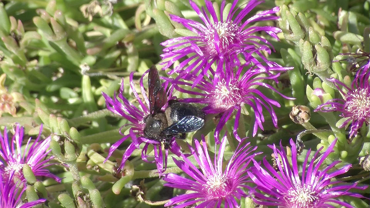 Delosperma cooperi - Mittagsblume - mit seltener Holzbiene